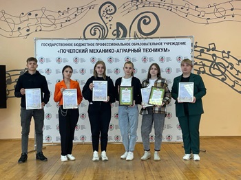 За высокие достижения в учебе, активное участие в работе профсоюзной организации учебного заведения Дипломы стипендиатов Профсоюза работников АПК РФ получили студенты ГБПОУ «Почепского механико-аграрного техникума»: Яна Юрьевна Кокорникова, Дарья Павловна Романова, Карина Владимировна Сапожникова, Юлия Николаевна Крыловская, Сергей Дмитриевич Бердников. Студентам были вручены стипендии от Брянской областной организации Профсоюза работников АПК РФ в размере 3000 рублей.Команде первичного отделения ГБПОУ «Почепский механико-аграрный техникум» «Движение первых» вручили благодарственные письма за активное участие в социально-значимых проектах на территории Почепского района, за творческий подход и инициативу.