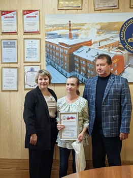 В торжественной обстановке руководством предприятия и председателем областной организации Профсоюза В.Ю.Макеевым вручены благодарности и памятные подарки активным членам Профсоюза за социальное партнерство и успехи в развитии отрасли.