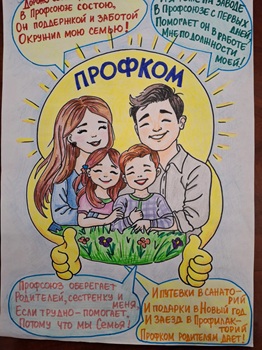 На конкурс было представлено 17 плакатов из разных ППО. По итогам конкурса 1 место получил плакат члена Профсоюза А.Н.Федоровой (ППО «Каргилл»), подчеркивающий роль Профсоюза в поддержке семьи.