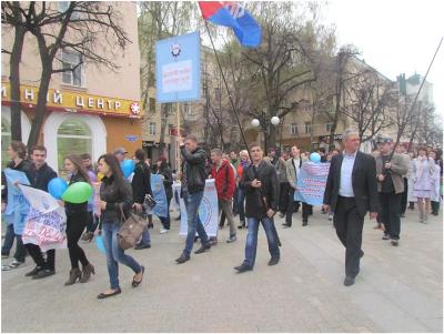 В ходе акции жителям города были розданы информационные листовки – приглашения на митинг, который состоялся 1 мая 2014 года под девизом «Достойный труд – справедливая зарплата!».