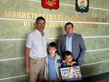 Председатель ППО Министерства сельского хозяйства РБ Рамиль Валиуллин поздравили первоклассников и вручили памятные подарки.
