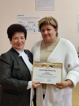 Благодарности за многолетний добросовестный труд, большой личный вклад в развитие профсоюзного движения, социального партнерства и в связи с 105-летием Профсоюза и 70-летием Белгородской областной организации Валентина Ивановна Харебина вручила директору техникума Алексею Анатольевичу Вишневецкому, председателю студенческой первичной организации Ольге Васильевне Губенко и председателю первичной профсоюзной организации работников Анжелике Александровне Перминовой.