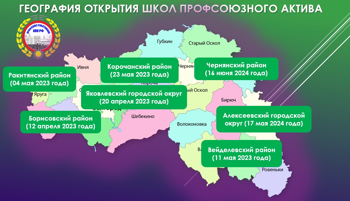 Несмотря на сложную оперативную обстановку в Белгородской области за период 2023-2024 гг. в муниципальных районах (городских округах) открыто 7 Школ профсоюзного актива на базе учебных заведений. Каждое мероприятие было по-своему интересным и уникальным.