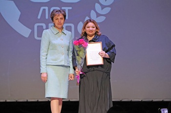По поручению комитета областной организации Профсоюза работников АПК РФ председатель Вейделевской территориальной организации Татьяна Алексеевна Аниканова вручила юбилейное Благодарственное письмо, Почетные грамоты и Благодарности сотрудникам техникума.