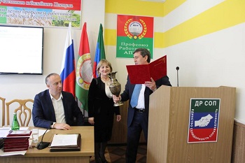 Председатель республиканской организации Профсоюза А.М.Кадиева наградила профсоюзных активистов Юбилейным знаком «100 лет Профсоюзу работников АПК РФ» и Почетными грамотами ЦК Профсоюза.