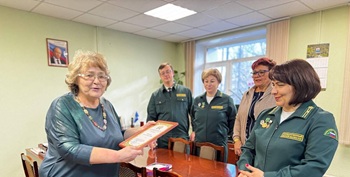 Л.Н.Сологубова вручила заслуженную награду председателю ППО КГКУ «Елизовское Лесничество».