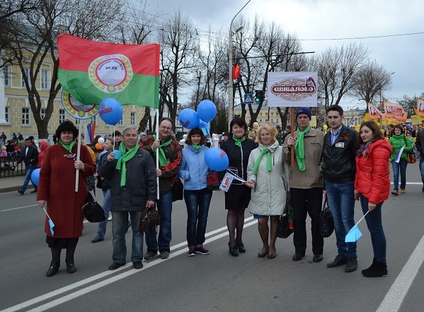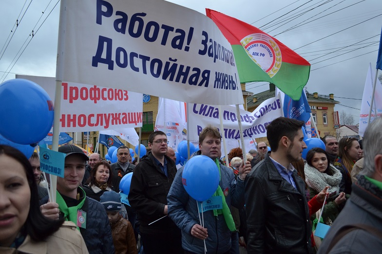 В преддверии 70-летия Великой Победы, в год 110-летия профсоюзного движения в нашей стране члены профсоюзов вышли под основным лозунгом «Росту цен – удвоение зарплаты!». Организованные колонны трудящихся прошли по Советской улице от областной филармонии до Сусанинской площади.