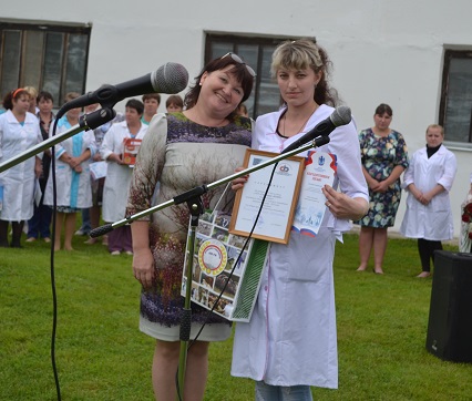Отдельный приз подготовила областная организация Профсоюза. В номинации «За высокие производственные показатели» оценивались объемы надоенного молока за год. Здесь победителем стала Елена Финогенова, оператор машинного доения ЗАО «Шунга». Ее средний показатель – более 7000 литров молока на корову в год. Это значительно превосходит средний показатель по области – 5000 литров. Елена Николаевна является членом Профсоюза. Ее профессиональные заслуги не раз отмечались. В прошлом году она стала победителем областного конкурса «Славим человека труда» в номинации «Мастер золотые руки». Специальный приз – сертификат на оздоровление в ЛПУ санаторий «Колос» – вручила Елене Финогеновой председатель областной организации Профсоюза Елена Шумова.
