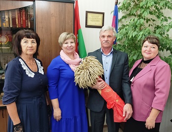 Владимир Анатольевич в свою очередь от всего трудового коллектива хлеборобов опытно-семеноводческого хозяйства «Березанское» вручил Светлане Викторовне Бессараб красивый сноп пшеницы «Урожая 2022».