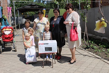 Председатель Кореновской районной организации Профсоюза работников АПК РФ Лариса Ивановна Картушова вручила многодетной маме микроволновую печь, а председатель первичной профорганизации ЗАО «Кореновский молочно-консервный комбинат» Нина Леонидовна Соколова - несколько коробок с самым любимым лакомством детей и взрослых – мороженным. Надо отметить, что ЗАО «Кореновский молочно-консервный комбинат» вообще шефствует над семьей Мальцевых, где 14 несовершеннолетних детей, и еженедельно привозит им молочную продукцию абсолютно бесплатно.