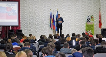 На мероприятии председатель Славянской районной организации Профсоюза А.П.Чумаков поздравил всех присутствующих с прошедшим Днем защитника Отечества и отметил значимость патриотического воспитания молодежи. Отметил, что молодежь техникума не только хорошо и отлично учится, но и в свободное от учебы время занимается общественной работой.
