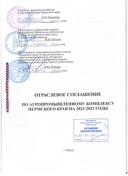 19 апреля 2021 года Отраслевое соглашение по АПК Пермского края на 2021-2023 гг. прошло уведомительную регистрацию в Министерстве промышленности и торговли Пермского края. Регистрационный номер 158.