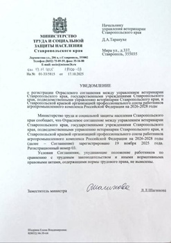 19 ноября 2025 года указанное соглашение было официально зарегистрировано в уведомительном порядке в Министерстве труда и социальной защиты населения Ставропольского края, что свидетельствует о его соответствии законодательным требованиям и отсутствии выявленных замечаний.